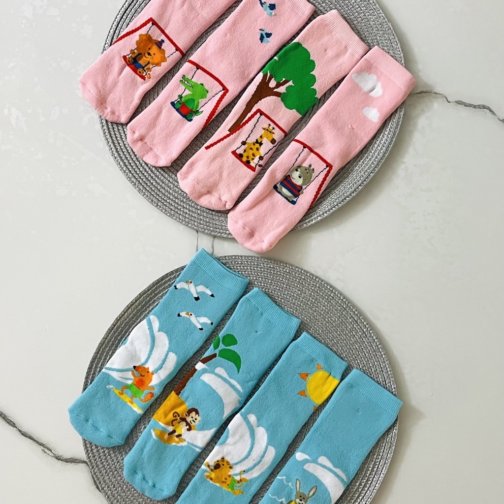 هر پک شامل دو جفت جوراب هم رنگ است که هر لنگه طرح جداگانه ای دارد