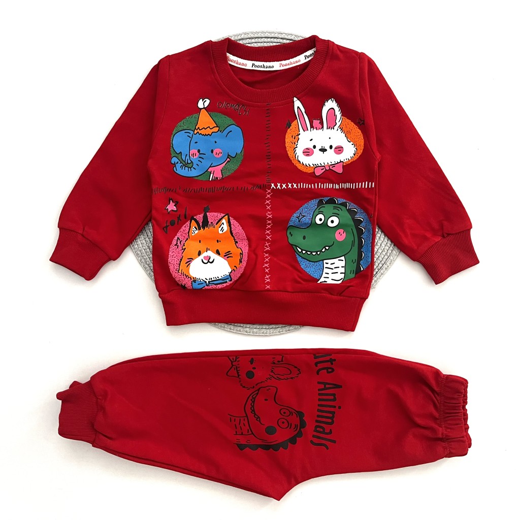 بلوز شلوار حیوانات زرشکی پوشانو kids