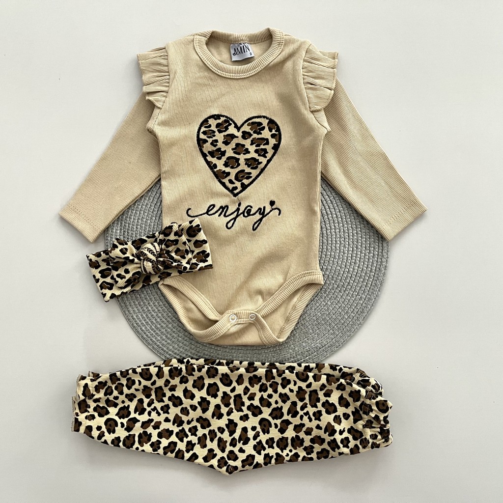 بادی شلوار تل قلب پلنگی کرمی AMIN